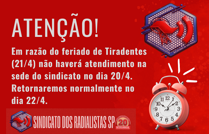 Feriado de Tiradentes 21/4 – Sede Fechada